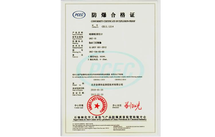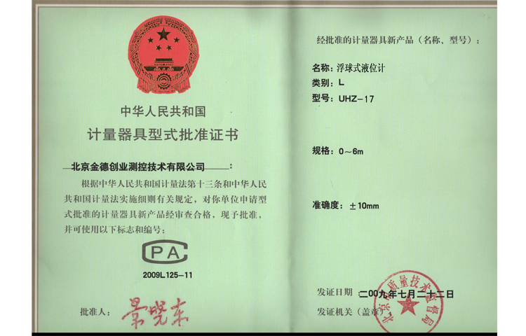 浮球計量器具形式批準證書