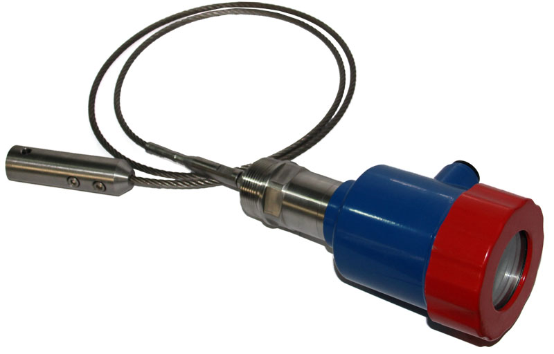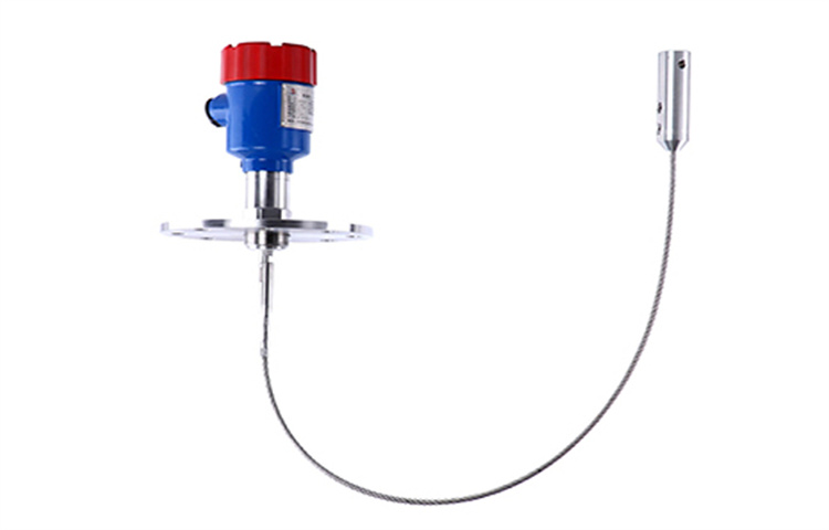 JDRD812纜式導波雷達物位計是基于TDR時域反射原理的一種接觸式物位測量儀表。導波雷達波發出的 高頻微波脈沖以光速沿著探測組件(鋼纜或鋼棒)傳播,當脈沖遇到物料表面時,由于介電常數εr與空氣不同,介電常數突變,就會產生反射,并被儀表接收器接收。 智能軟件對正確的回波識別后,通過微處理器精確控制和計算脈沖運行時間并被轉換成 與距離成正比的4-20mA信號,精度可達毫米級。